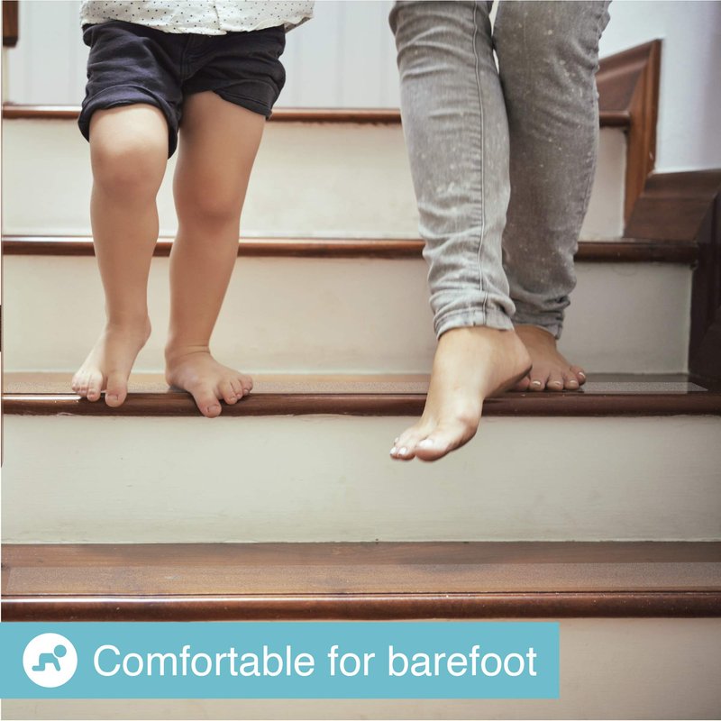 - CREATE HEALTHY ENVIRONMENT: This clear non-skid adhesive tape is made out of environmentally friendly material with a soft texture surface to create traction and prevent slips. It is comfortable for bare feet. It has many great features for using to create a safe environment for your kids, seniors and dogs.