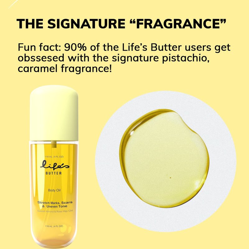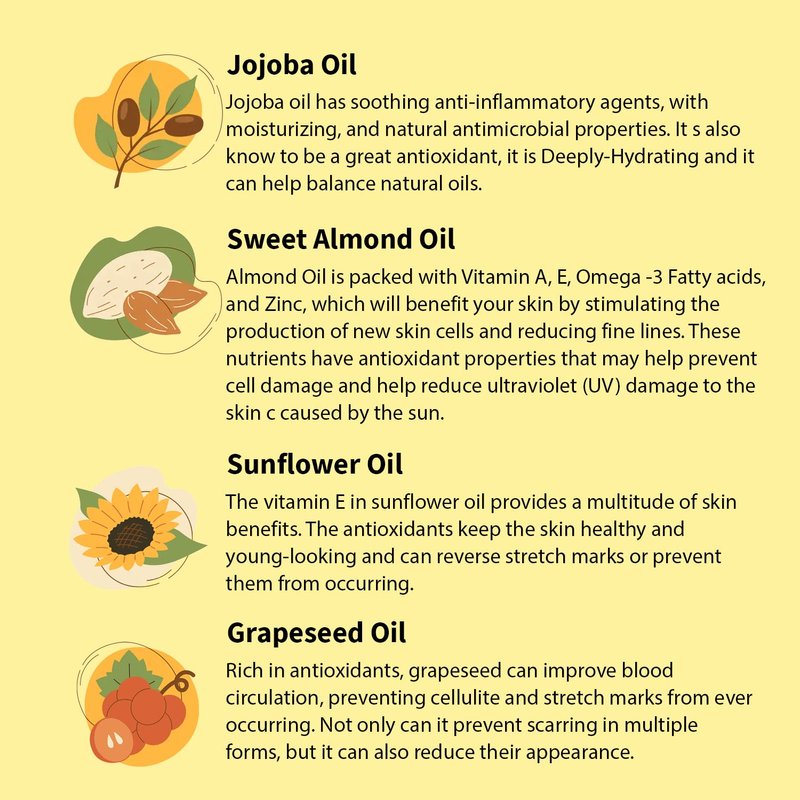 Life's Butter Body Oil with Jojoba Oil, Sweet Almond Oil, Sunflower Oil, Grapeseed Oil for Scars and Stretchmarks, Body Oil for Pregnancy Improves elasticity and Visibily Firms and Tones | 100% Natural