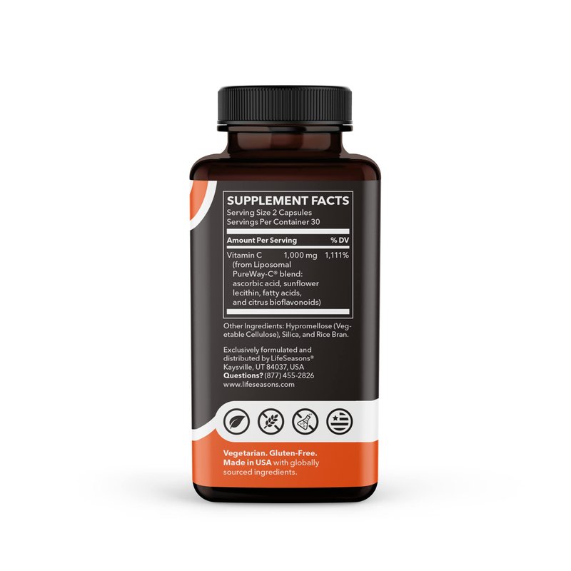 LifeSeasons Liposomal Vitamin C 1000 mg is an essential supplement that supports a healthy immune response while combating oxidative stress with powerful antioxidants. Our product contains fat-soluble vitamin C, which is absorbed more easily into the bloodstream and can be tolerated better than water-soluble options.