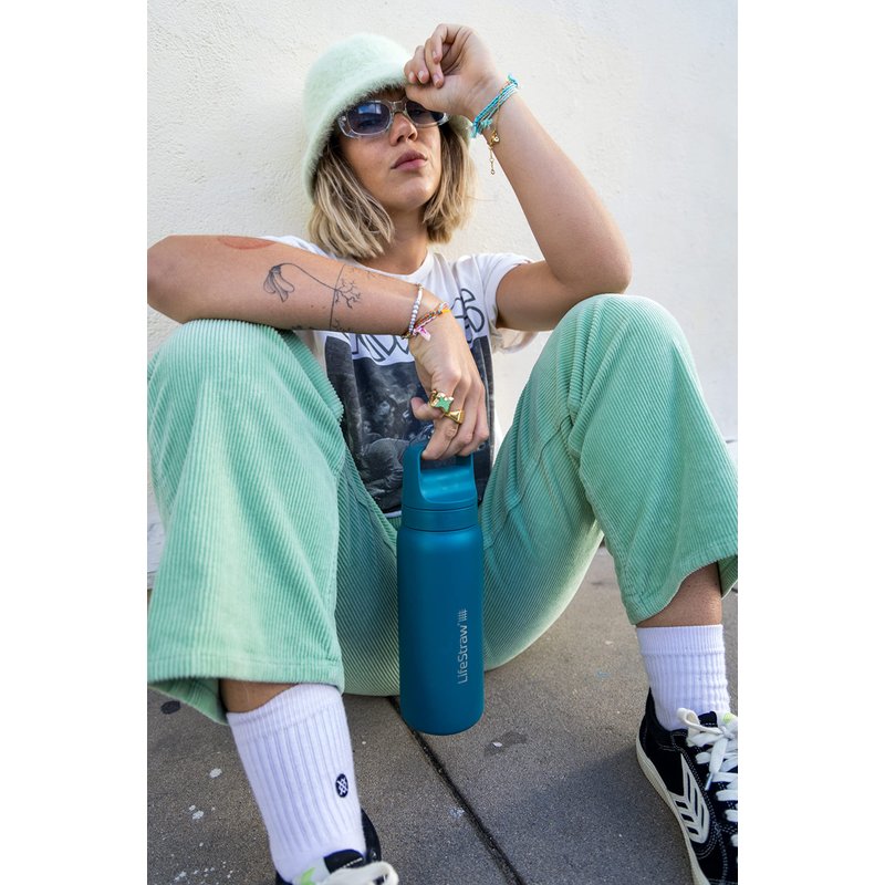 LifeStraw Go Series – Insulated Stainless Steel Water Filter Bottle for Travel and Everyday use removes Bacteria, parasites and microplastics, Improves Taste, 24oz Laguna Teal