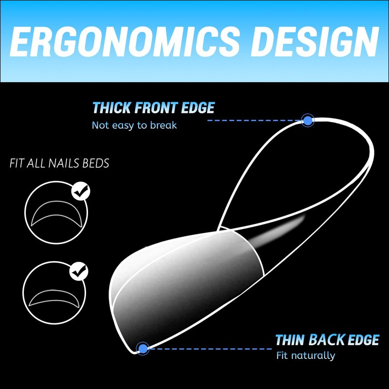 - Pre-shaped acrylic toenails: Square toenails are pre-shaped for easy apply to toenail beds, and fit nail bed from cuticle to free edge perfect without any separation or exposure. Gel toe nails also design with thin back smooth-edge fit your toe nails comfortable and naturally, strong thick front edge with better break resistant ensure your toenails not easy to break, prolongs service life, and also ensure perfect nail shaping, reduces the time spent on nail shaping.