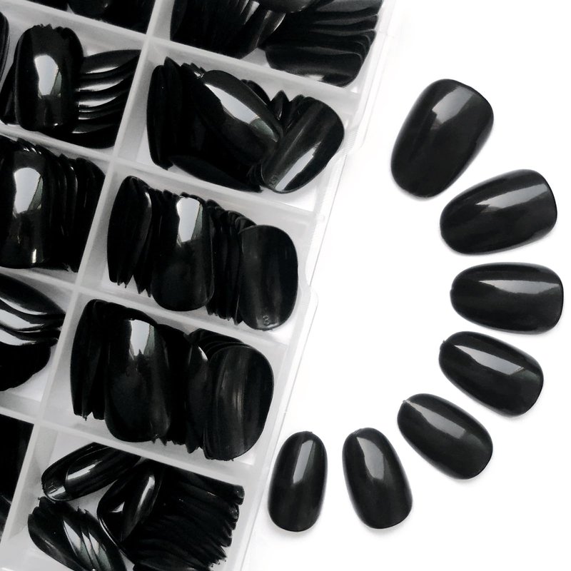 - Solid Color Almond Press on Nails Pack: Short press on nails kit come with 240pc glossy black color short almond shape press ons nails +5sheet nail adhesive sticky tabs+2pc nail glue+1pc 100/180 grit nail file tools+1pc wooden nail sticks. A complete nail art kit for women girls and kids at home manicure.