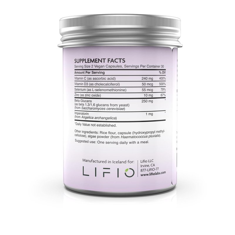 Lifio Immunity Rev+ | Ultra Potency Beta- Glucans 1,3/1,6 | 250 mg with Algae Extract, Vitamin C, D3, Selenium and Zinc, Non-GMO, Gluten Free | 60 Capsules