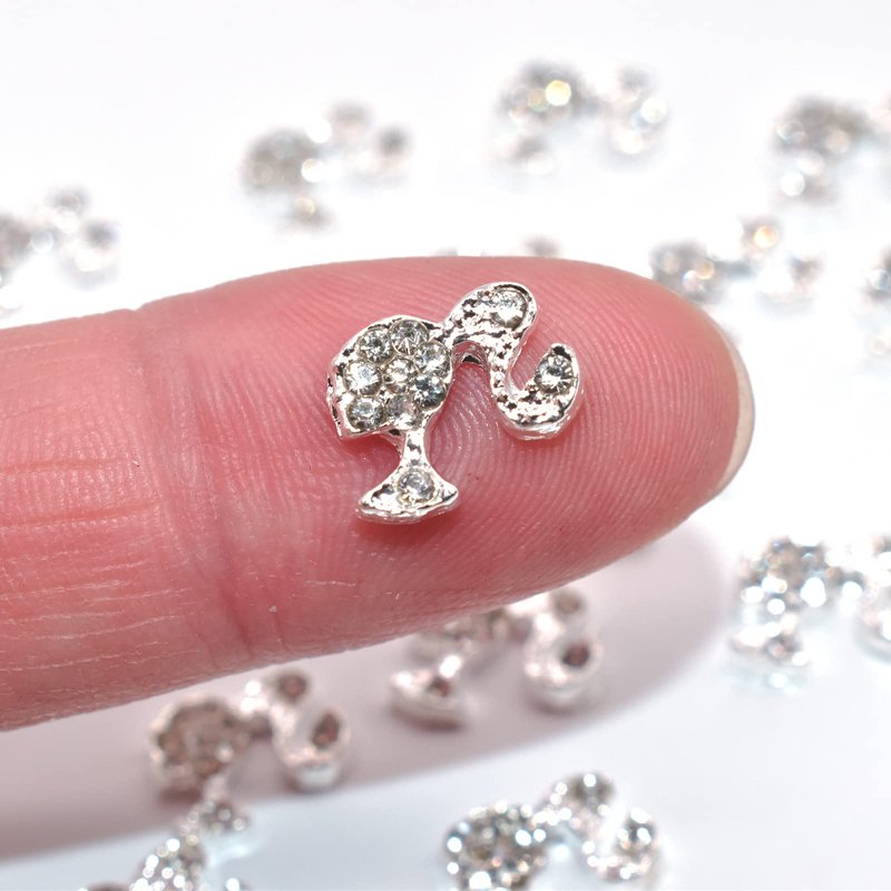- These head silver nail charms can be used to decorate nail art, mobile phone cases, makeup mirrors, greeting cards, and other decorations. With a slightly curved design, they are easy to apply to natural or artificial nails. Additionally, they are lightweight, making them easy to carry with you in a small bag.
