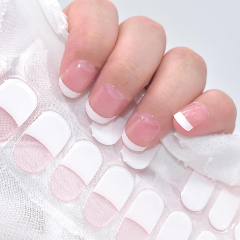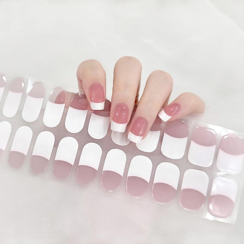 LIFOOST Gel Nail Art Wraps French Tip White Jelly Pink Adhesive Nail Stickers 22 Polish Strips Art Manicure Kits for DIY at Home