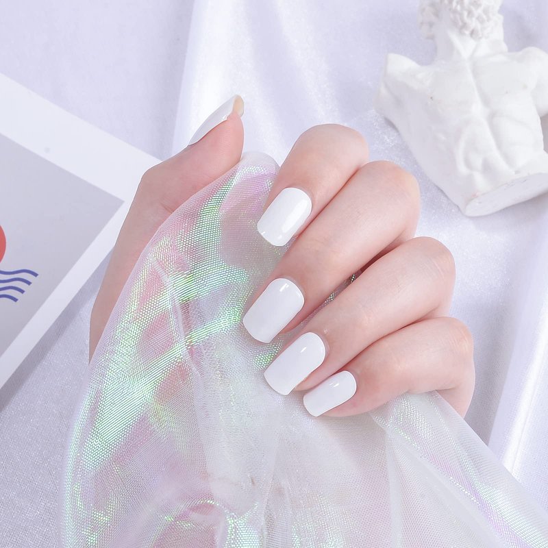 LIFOOST Gel Nail Polish Strips White Solid Color Free Nail Light/Lamp Gel Nail Stickers 20 Extra-Long Manicure Strips