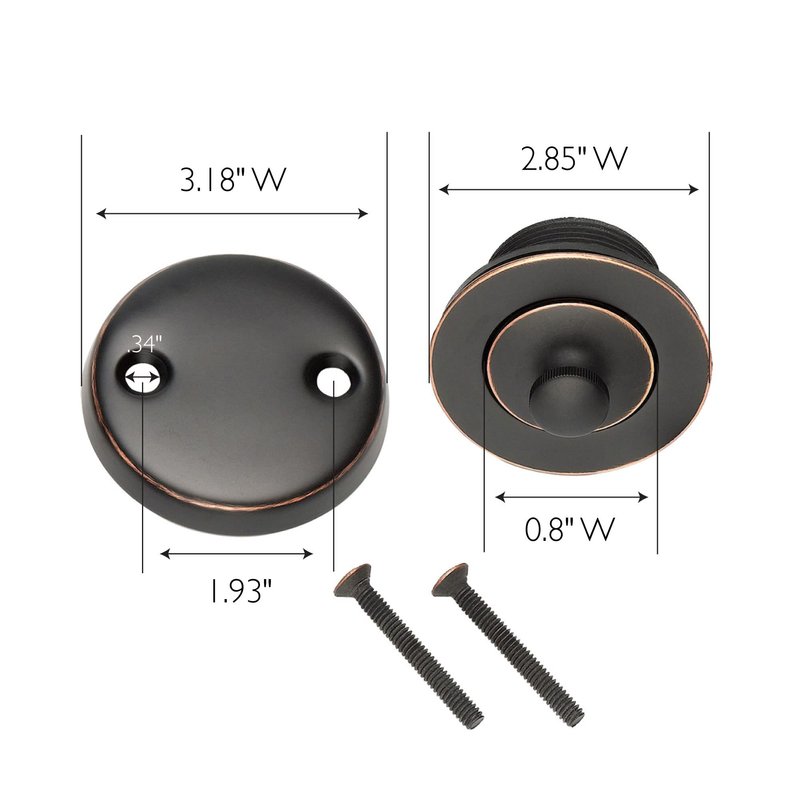 Lift and Turn Bath Drain Plug Kit with Two-Hole Overflow Faceplate, Oil Rubbed Bronze
