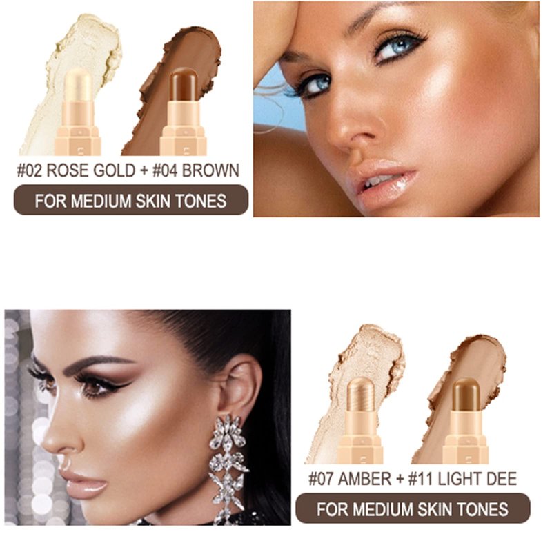 - [Highlighter Contour Makeup stick] - Countour highlight stick has a silky, lightweight, buttery smooth formula that blends seamlessly onto your skin! The makeup contour and makeup highlighter create the illusion of a sculpted, defined face in (almost) no time.