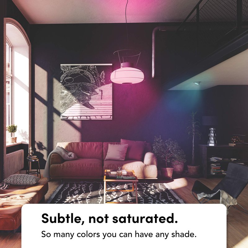 - Subtle not saturated. So many colors you can have any shade. Billions of possible color steps. RGBW LEDs for richer colors and huge 1500-9000K white range. Set a scene to wow your guests, enhance movie night, or create the right vibe for "me-time".