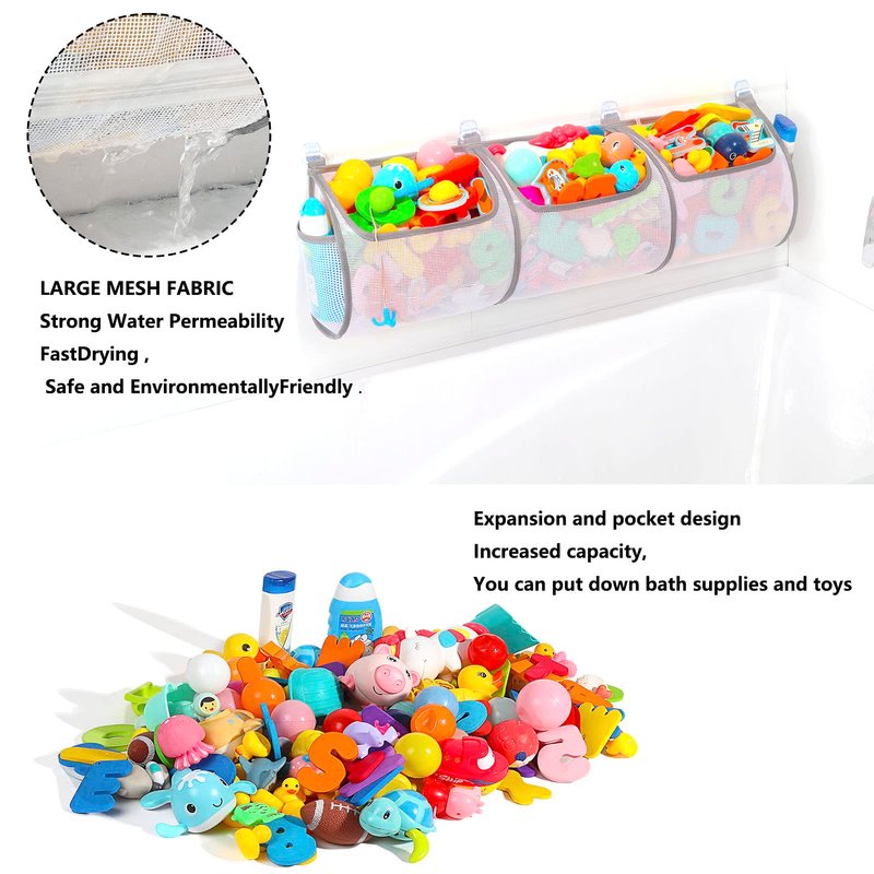 - LARGE CAPACITY- With the increase of the capacity of the bath toy storage room, it can accommodate all baby bath toys and keep the bathroom clean and tidy