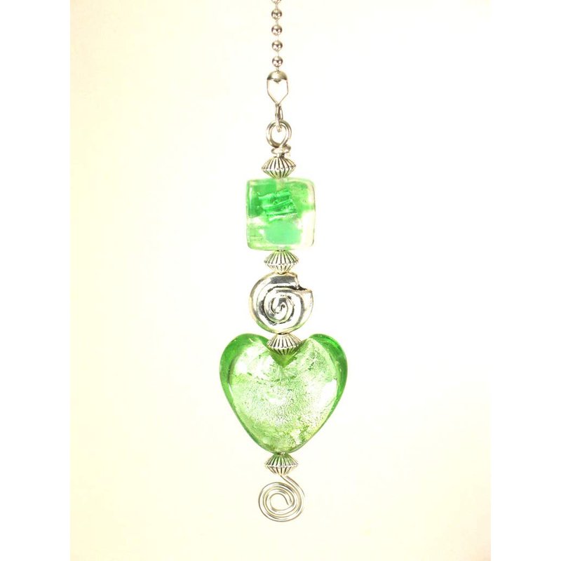 Light Green Modern Art Glass Heart and Swirl Ceiling Fan Pull Chain