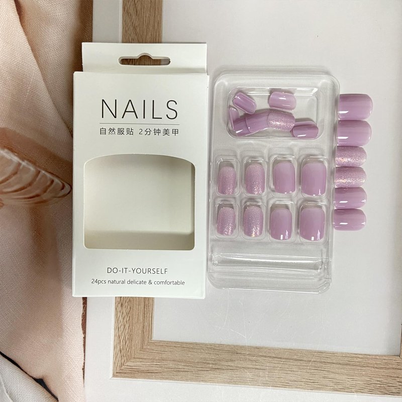 24Pcs Press on Fingernails Short Squaer False Nails, Light Purple False Nails With Glitter Designs,Solid Color Artificial Fingers,Party, Nail Salon, Holiday Nail Art Decorations