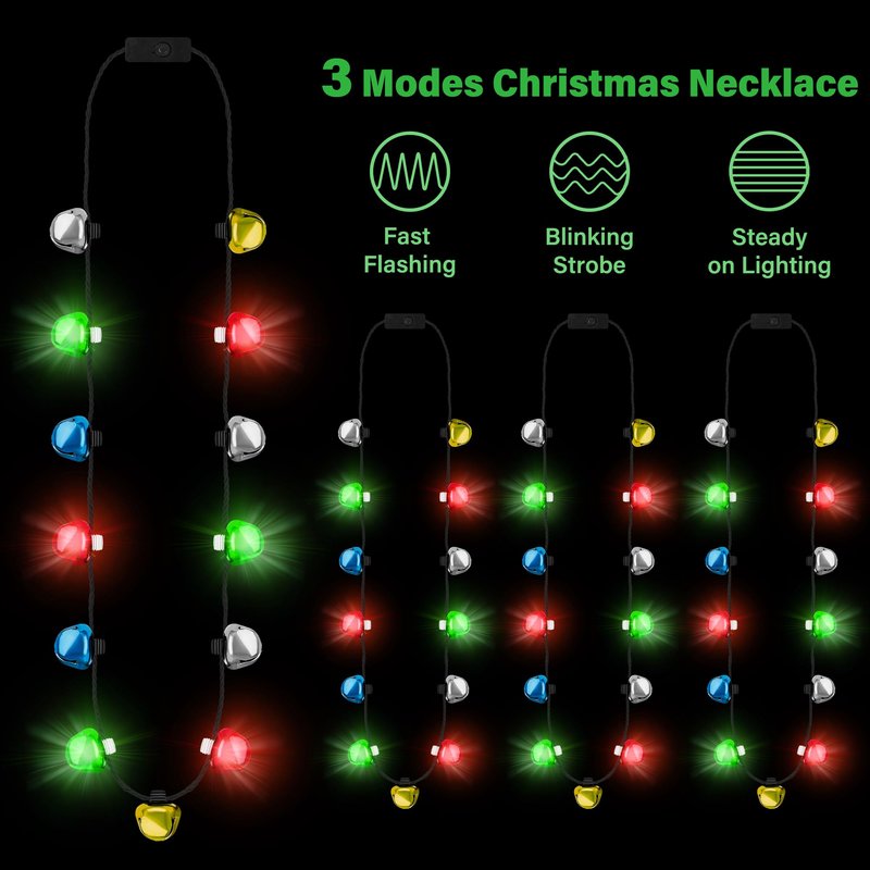 - 13PCS Large Bell - The size of Christmas light up necklace bell has been increased to make a clearer sound. Spend a happy Christmas with the jingle of the necklace.