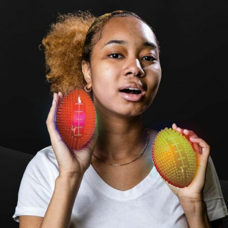 - These squishy toys for kids are fun to toss or kick around. The eye-catching flashes of light are sure to make nighttime play a touchdown! With a unique texture, these mini footballs are easy to grip and throw.