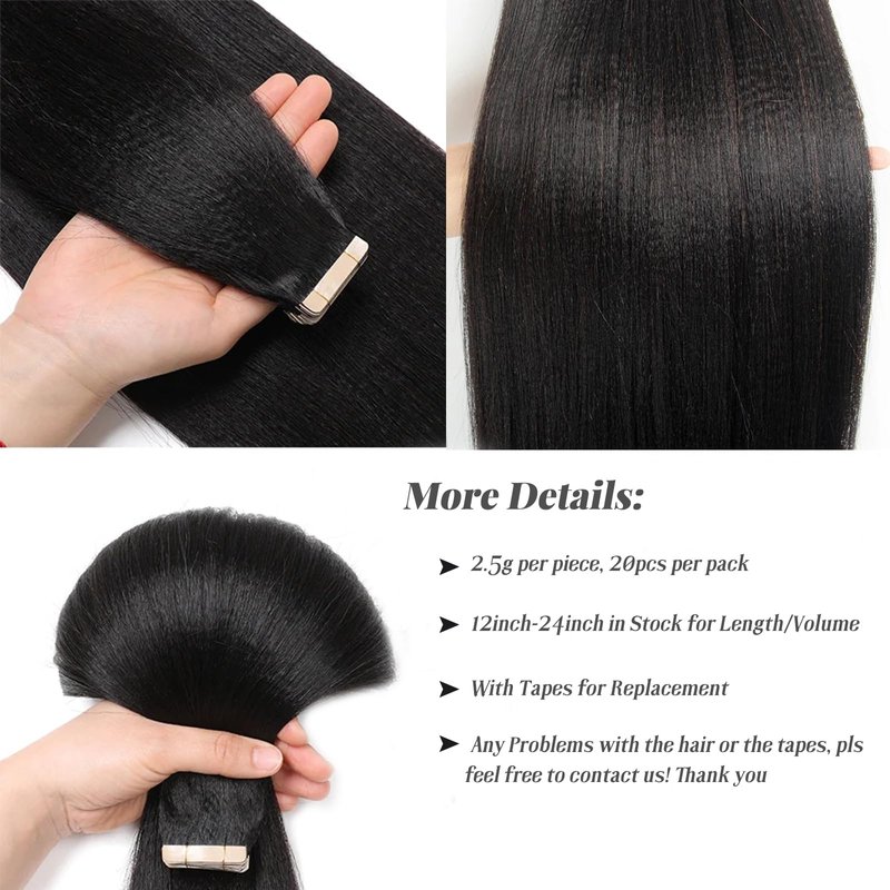 Light Yaki Hair Extensions Tape in Human Hair 18 Inch Natural Black Tape ins Human Hair Extensions Black Women Yaki Straight Invisible Skin Weft Real Hair Tape in Extensions 50grams 20pcs