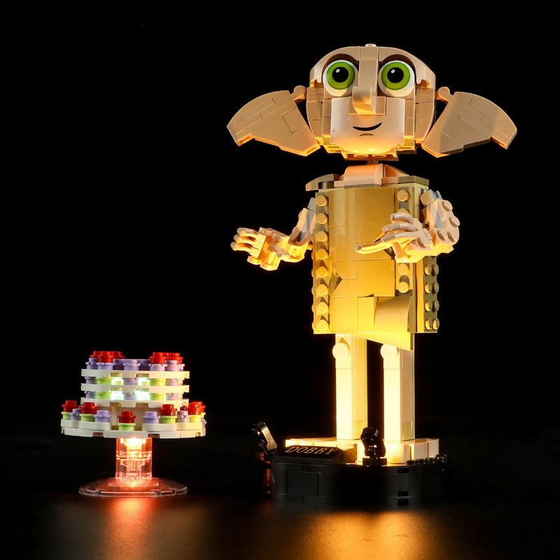 - PRODUCT FEATURE: The warm white spotlights make the elf Dobby more vivid and striking, paired with two areas of colorful slow-flashing light effects to create a mysterious atmosphere, showcasing the magical charm of the Dobby elf brick set!
