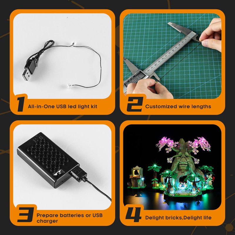 - Easy Installation: All-in-one led light kit is designed with a specific wire layout and wire distance for lego 77092 Great Deku Tree 2-in-1 model. No need to assemble anything separately, it's beginner-friendly.(NOT included the Lego Set).