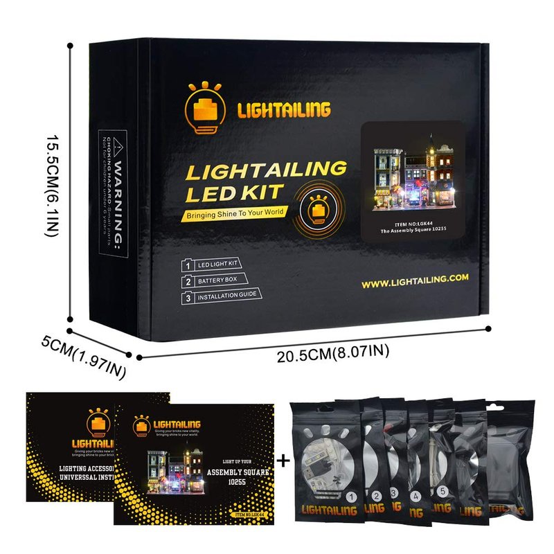 Lightailing LED light, means to light up the darkness, a fantastic item to light up your Creator Expert The Assembly Square building blocks model. It can make your building blocks become more beautiful and unique and it gives them new vitality. Our products, using environment-friendly material, are all packed in a new charming original box. Quality is guaranteed and all is handmade so you can buy this item without worry.