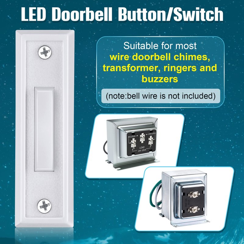 - LED Wall Mounted Doorbell Button: the lighted doorbell button switch can be applied on cement or wood surfaces, easy to find in the dark, bring convenience to you at night too