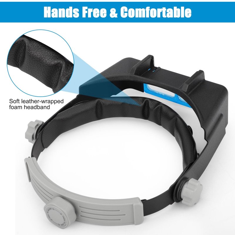 - Comfortable to Wear: The head magnifier is padded with soft foam and covered with leather for enduring comfort. Adjust the knob on the back for a perfect fit, while side knobs modify the magnifier visor height to achieve your preferred viewing angle.