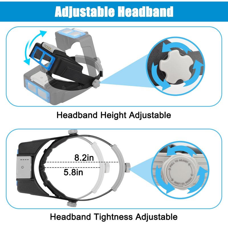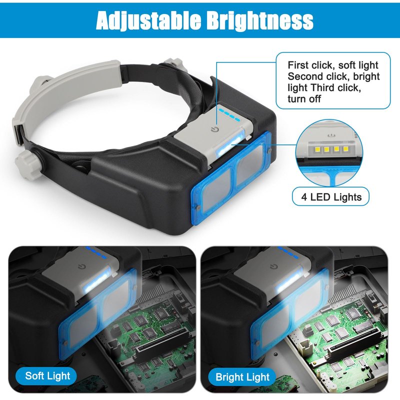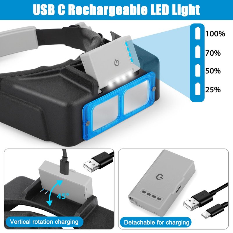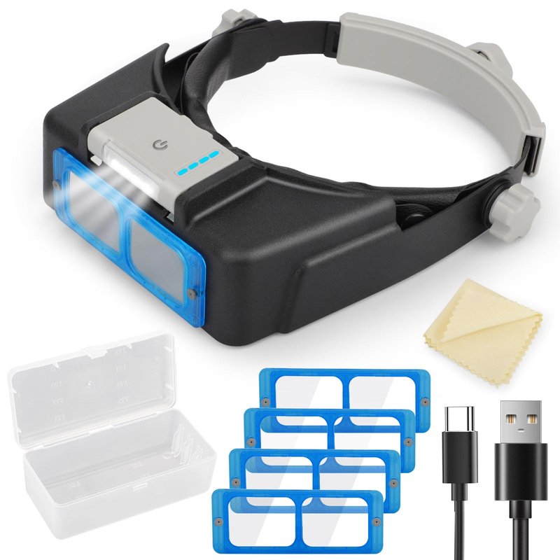 - What You Get: You will receive 1pc head mount magnifier, 4pc lenses with storage case, 4pc plastic screws, 1pc USB C cable, 1pc glasses cloth, and 1pc user manual. The headband magnifier with light makes an ideal gift for seniors or anyone who needs help with close work!
