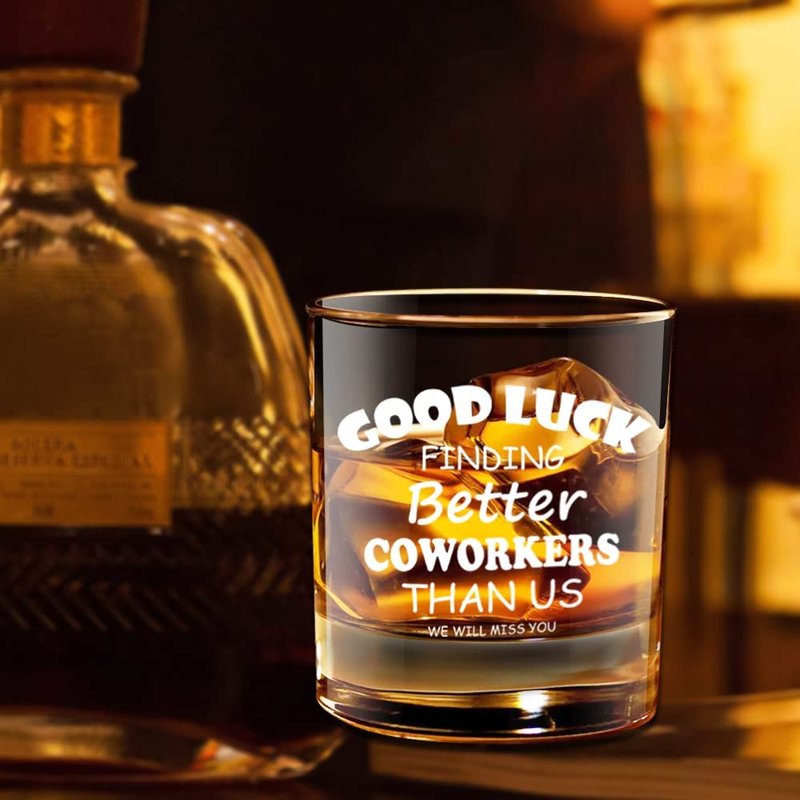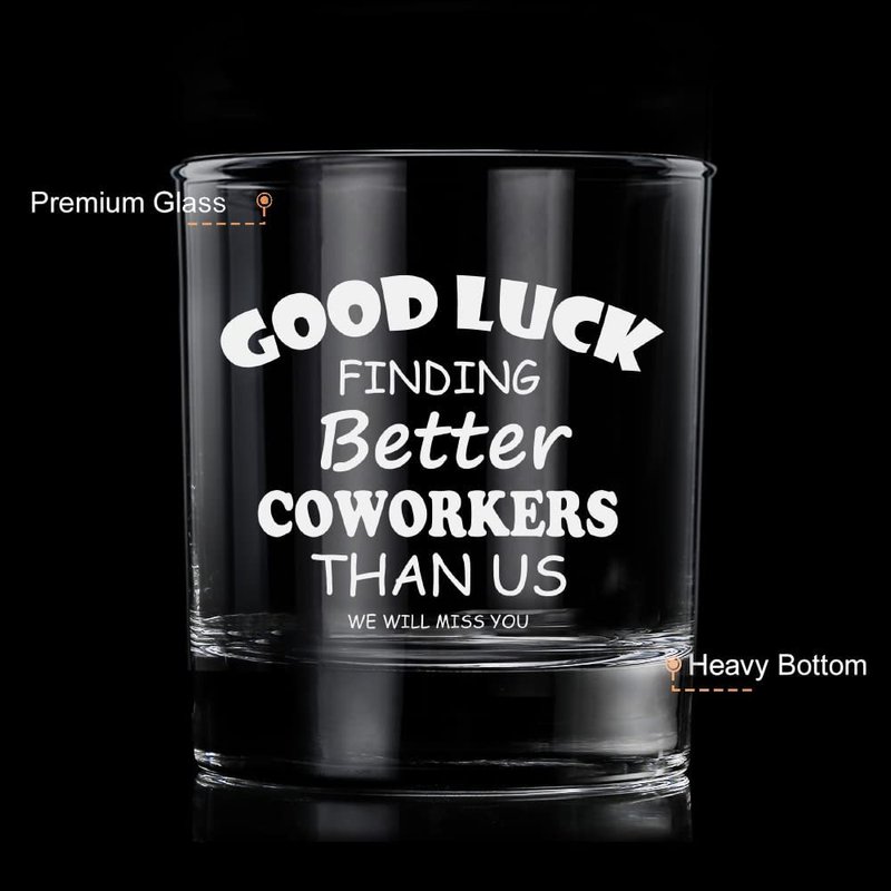 - 【Lead Free Crystal Whiskey Glass】This Good Luck Finding Better Coworkers Than Us Whiskey Glass is made of high-quality lead free crystal glass. Old fashioned glass features with thick side and solid base design,it is more durable and breakage resistant than others.12 oz large capacity is great to add whiskey cubes and stones for your favourite drinks such as scotch,bourbon,vodka,old fashioned cocktails,whiskey etc.