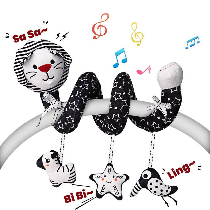 - Engaging Senses: The black-and-white design provides visual stimulation for newborns. Press the lion's head for a rustling sound, and shake the hanging dolls for bell chimes—perfect for developing sight, touch, and hearing