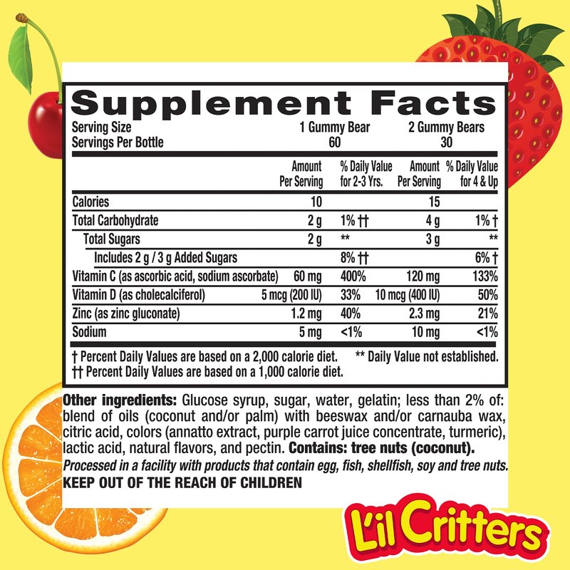 - Lil Critters Gummy Vitamin C and Echinacea Dietary Supplements gives immune support for kids.
