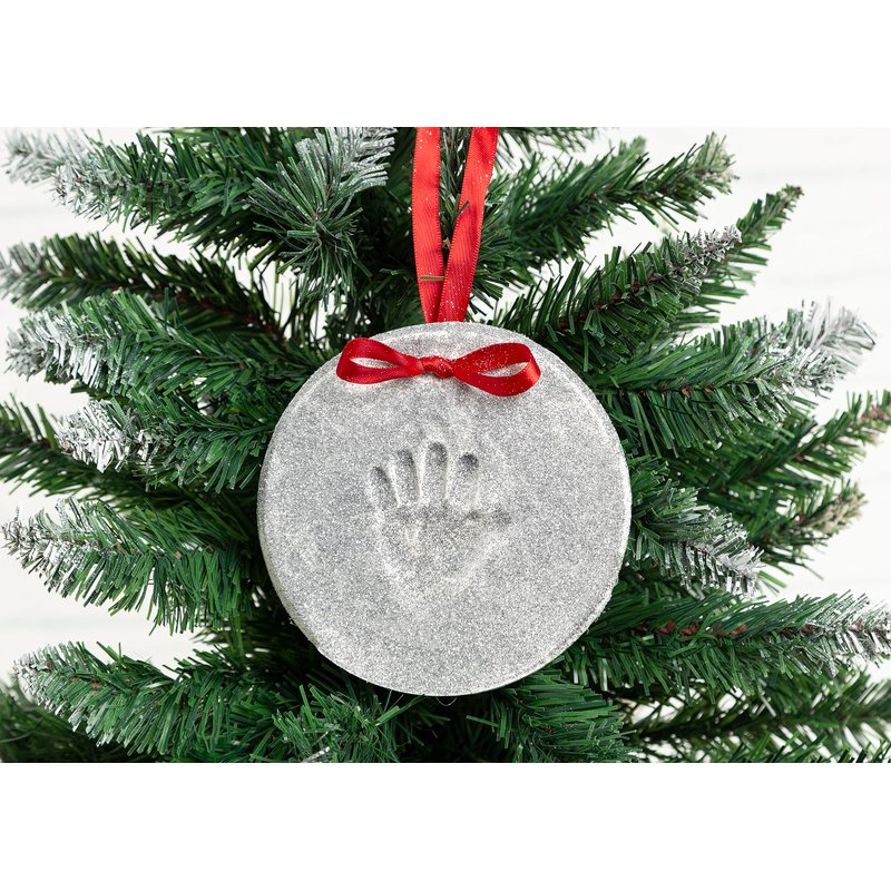 Lil Peach Baby’s Print Christmas Clay Ornament Kit, Baby's First Christmas Tree Ornament, for Baby Girl Or Baby Boy, Newborn Handprint Or Footprint Keepsake, Silver Glitter