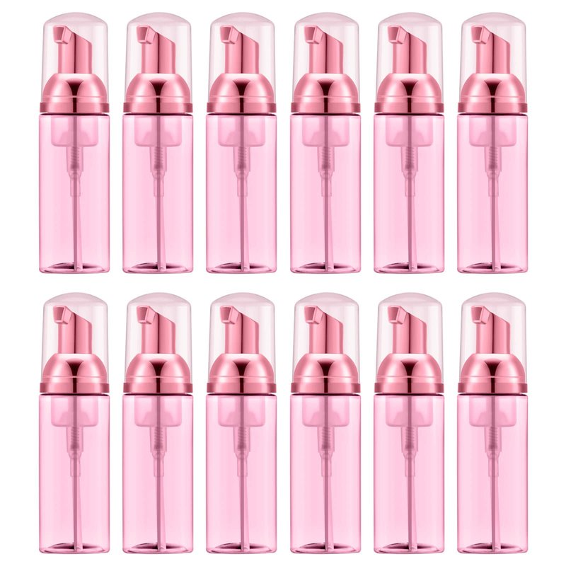 Lil Ray 2 Oz Empty Clear Rose Red Foam Pump Bottle, Travel Foamer Soap Dispenser for Lash Shampoo, Hand Soap, Foaming Cleaner(Rose Red Pump, 12 PCS)