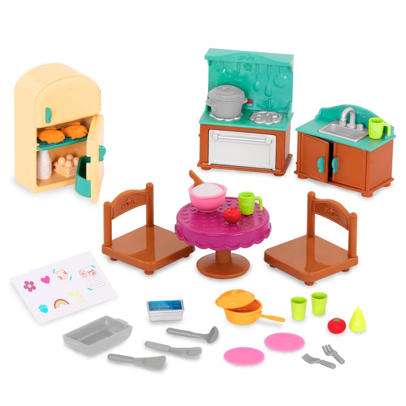 Li’l Woodzeez –Country Kitchen Set – 30Pcs Miniature Dollhouse Furnitures & Accessories – Pretend Play Food – Gift Toy for Kids 3 Years +