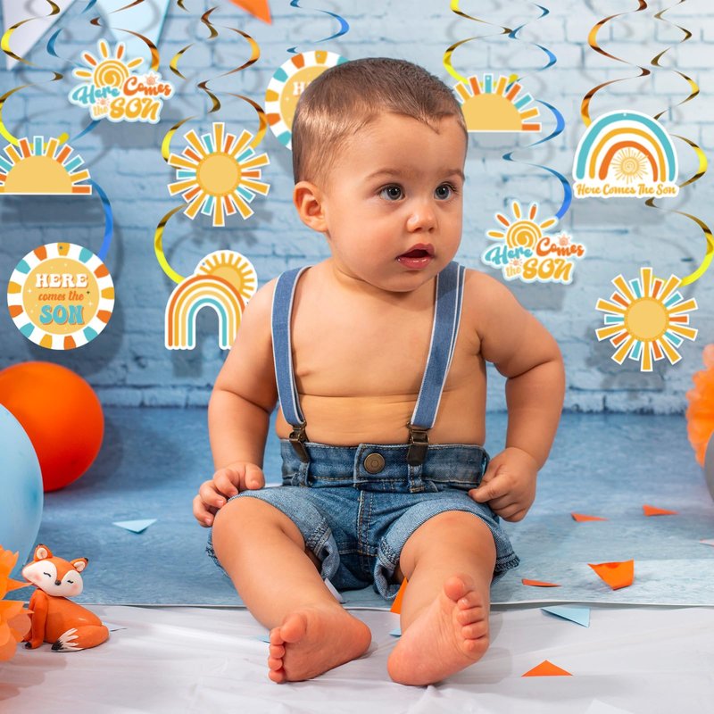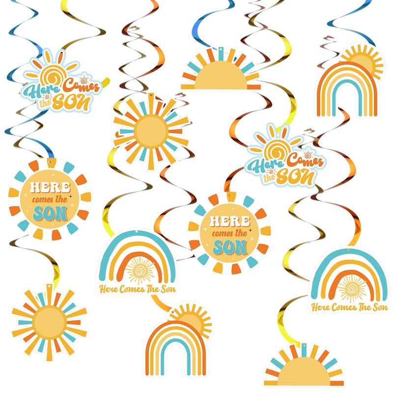 - Rainbow Sun Design: the here comes the son birthday hanging swirl decorations features classic boho elements patterns that are sure to brighten up any occasion; The colorful cutouts and hanging swirls add a festive and fun atmosphere to any event