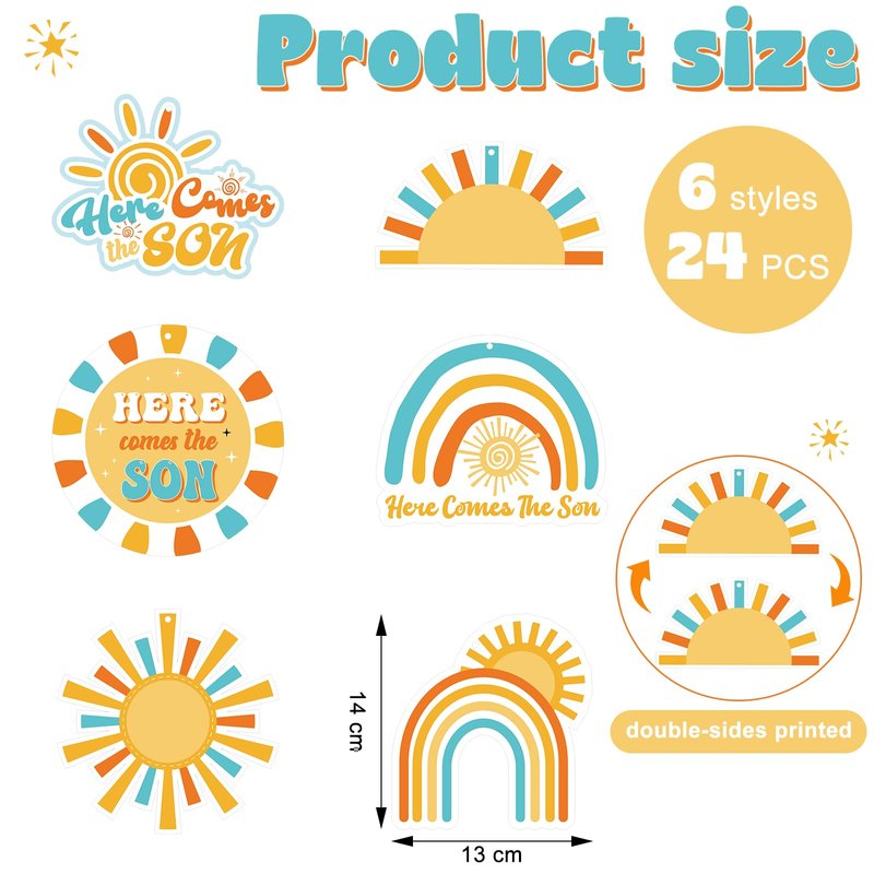 - Ample for Party Decorations: the here comes the son party favors are composed of 24 pieces of hanging swirls in 3 different colors, 8 pieces for each, and 24 cutouts with 6 different styles 4 for each style, providing you enough decoration to embellish your baby shower or birthday