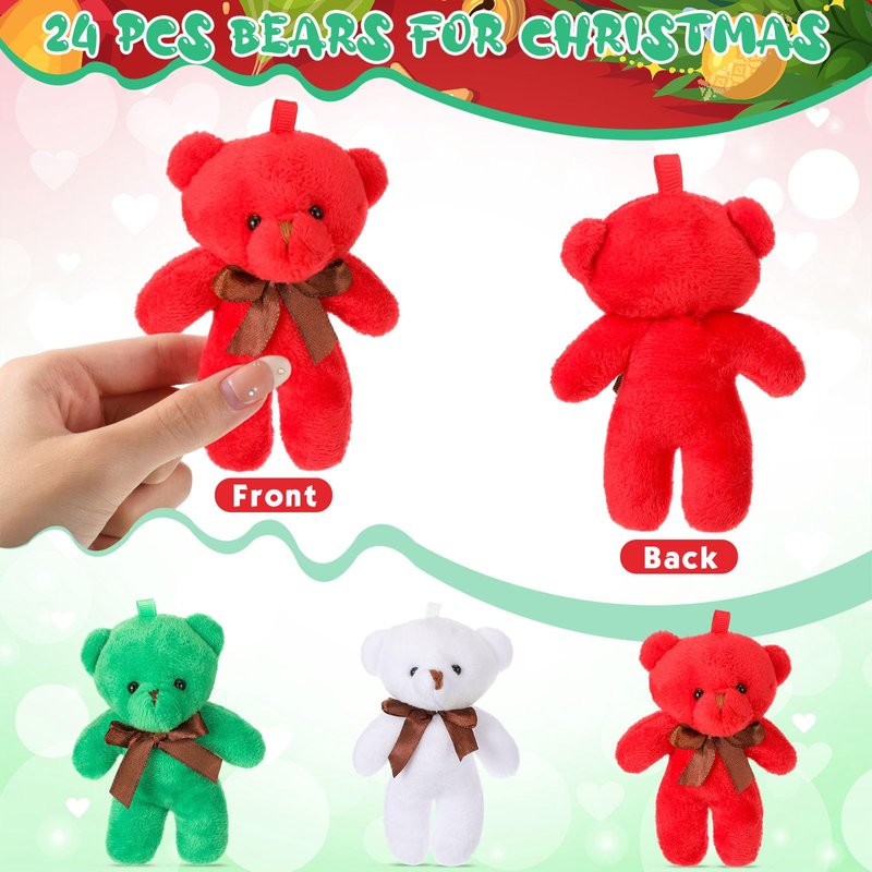 - Sufficient Quantity: you will get 24 pieces of mini Christmas bears, 3 styles of different colors, 8 pieces of each style, including red, green, and white; The cute bears are more in line with the festive atmosphere with Christmas colors; They are sufficient in quantity to meet your daily use, sharing, or decoration needs