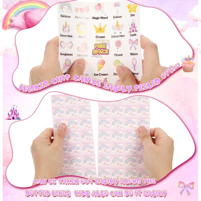 - More Occasion: unicorn bingo is a great gift for girls and adults, perfect for unicorn birthday parties, rainbow theme parties, classroom parties, school activities, family gatherings, and more; Simple and fun mini game will be sure to bring joy to your princess parties