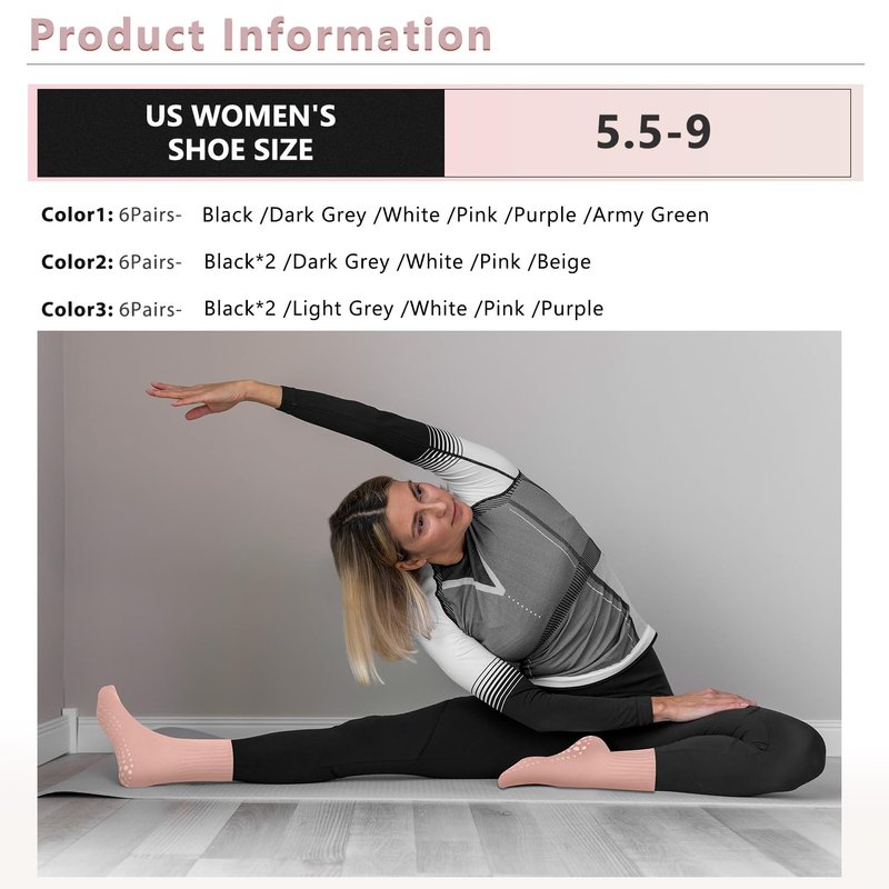 - ☁️【COMFORTABLE DESIGN】Lilisilk pilates grip socks made from premium combed cotton,which are soft and durable ergonomically designed.The inner design of the yoga socks is very soft and friendly to the toes.The material is breathable and comfortable, which can keep your feet warm and dry.You can get 6 pairs of womens' pilates socks all in one.