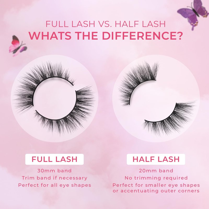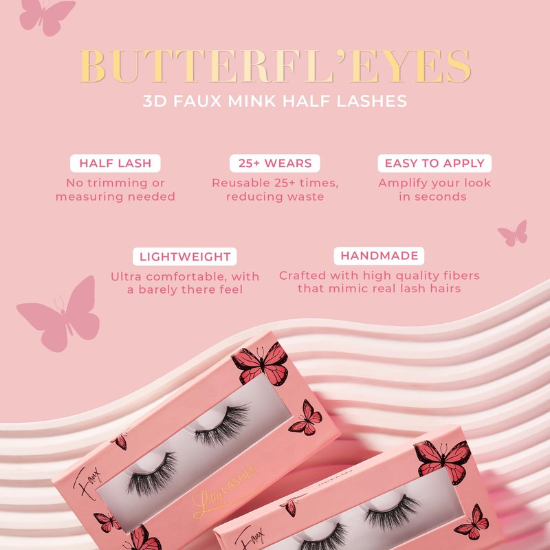 - DISCOVER THE BEAUTY OF NATURAL-LOOKING LASHES - With Butterfl'eyes Half Lash False Eyelashes, you'll no longer struggle with fake lashes that appear overly dramatic or artificial. Our half strip design provides a subtle enhancement, making your eyes look naturally captivating.