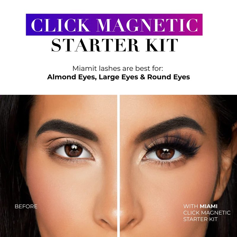 A starter kit featuring one pair of magnetic false lashes in best-selling style 3D Miami, a full-size magnetic liquid liner, and lash adhesive. Click Magnetic Liquid Eyeliner simplifies the lash application experience in 3 fail proof steps. 1- Apply at least 1 layer of the waterproof, longwearing & highly pigmented formula to the lash line using the ultra-thin precision tip brush-on applicator. 2- Allow up to 2 mins to dry for a guaranteed all-day hold. 3- Apply lashes & allow them to click into place for comfortable, all-day wear! tool set, lash glue, mink lashes, tool kit, tiktok trend items, makeup kit, lashes natural look, eye lashes, natural lashes, eyelash extension glue, eyelashes natural look, makeup set, lash extension glue, eyelash extension supplies, magnetic eyelashes natural look, fake lashes, colored lashes, eye lashes sets pack natural look, fake eyelashes natural look, lash kit, half lashes, false eyelashes natural look, eyelashes magnetic lashes natural, delineador magnetico, eye lash glue, colored eyelashes, magnetic lashes with eyeliner, color eyeliner, eyelash case, fake lashes natural, magnetic eyelashes with eyeliner, eyelash kit, dollar items only,eye lash, pestanas magneticas, lash boxes, eyelashes pack, natural magnetic eyelashes, fake eyelashes magnetic, pestanas postizas naturales, professional makeup kit, black eyelash glue, japanese lashes, eyelash storage case, butterfly lashes, false eyelashes magnetic, anime lashes, 20mm lashes, fake lashes with glue, korean lashes, lashes magnetic, asian lashes, magnetic eyelash, anime eyelashes, eyelashes magnetic, false lashes natural look, magnetic lashes natural looking, long eyelashes, eyelash adhesive, butterfly eyelashes, lash applicator, magnetic eye lashes, clear magnetic eyeliner, eyelash tweezers for false lashes, eyelash boxes, eyelash applicator, reusable self adhesive eyelashes, koko lashes, eyeliner set, magnet tool, magnetic eyeliner and lashes, magnetic eyelashes with applicator
