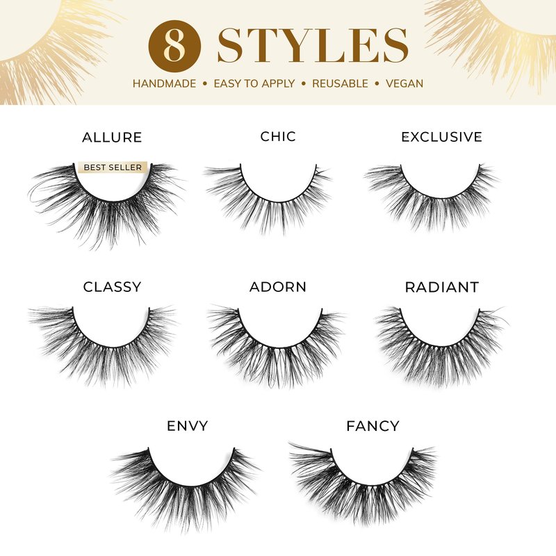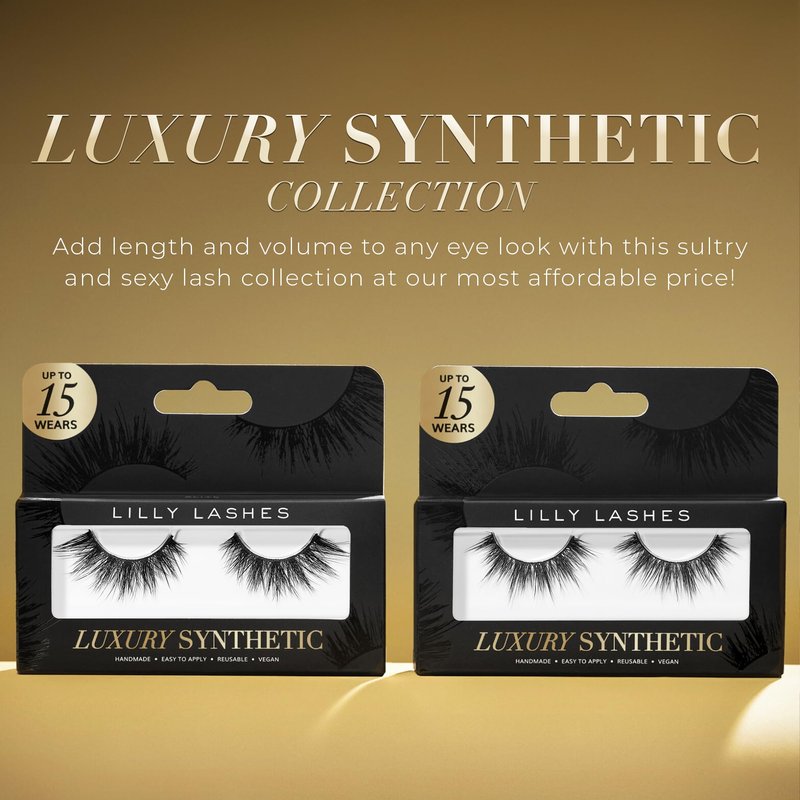 - LUXURY FALSE EYELASHES: Curated for versatility, our Luxury Synthetic LITE line features an array of lashes for a range of enchanting looks. Using the highest quality of synthetic material, each Luxury Synthetic LITE lash adds natural wispy volume and length. Reusable up to 15x to keep you looking glamorous.