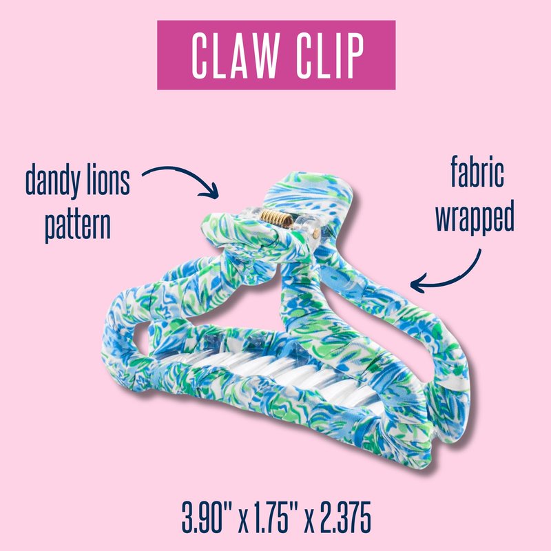 - Add a touch of playfulness and elegance with this fabric wrapped jaw clip featuring our Dandy Lions pattern