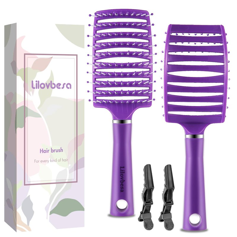 Lilovbesa Hair Brush, Detangling Hair Brush, Curved Detangler Brush for Women Men kids Curly Think Fine Thin Long Short Wet Dry Hair, Professional Hair Styling Tools,Fast Blow Drying, No Pull(Purple)