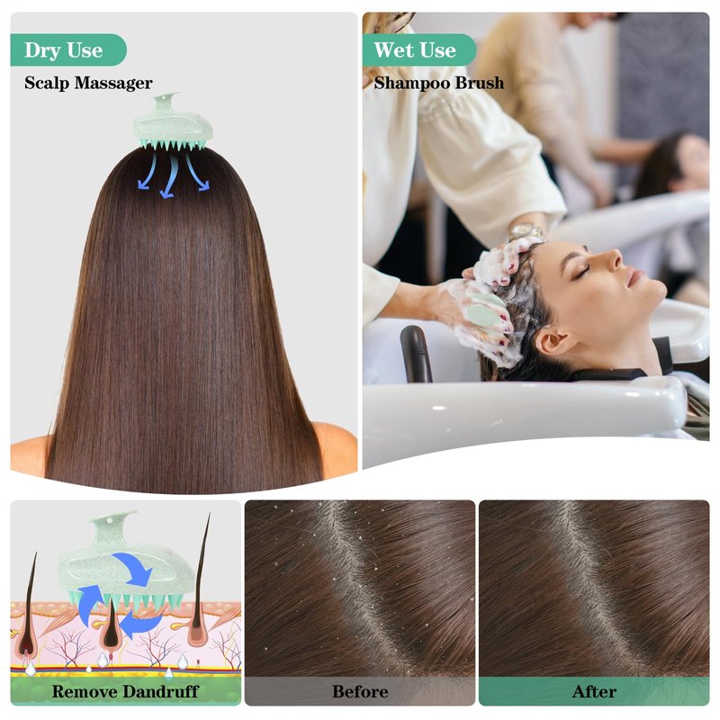 - Deep Cleansing Scalp Scrubber: Soft silicone scalp shampoo brush provides a comfortable head massage while cleansing your hair more deeply ,gently exfoliating your scalp and promoting hair growth. It's a perfect scalp massage tool. Simply use a small amount of shampoo to create a richer foam, preventing the buildup of hair products or dry skin that leads to dandruff. Make your scalp and hair healthier