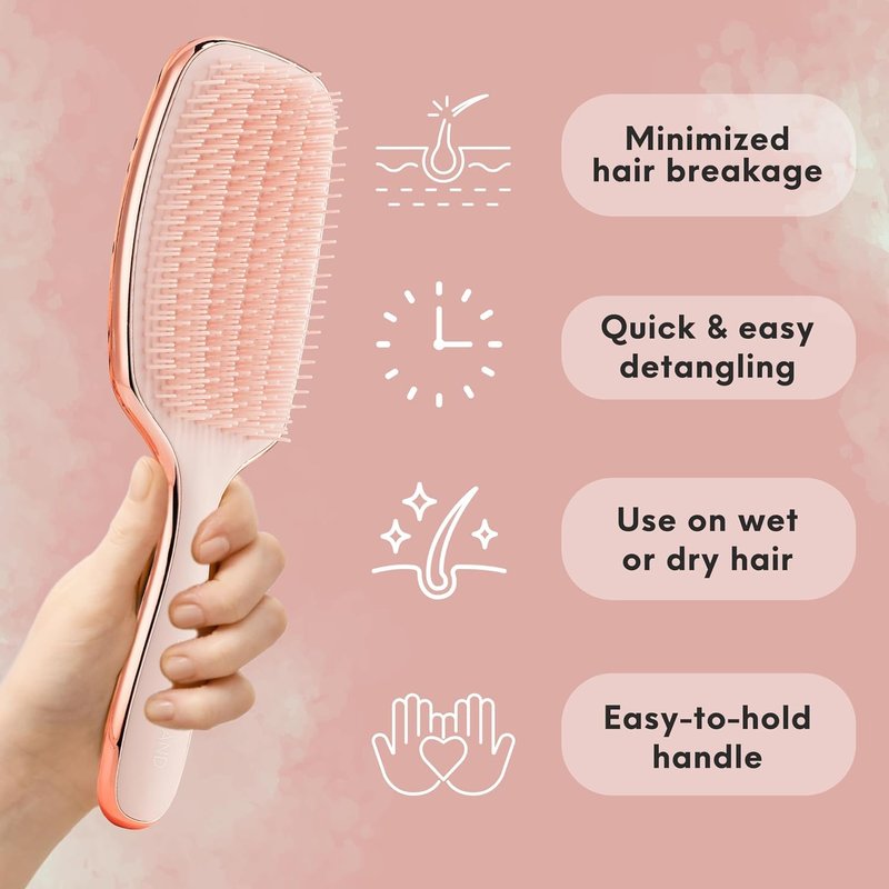 Lily England Curly Hair Brush for Detangling & Styling - Pain-Free Curl Brush for Wet & Dry Hair With Flexible Bristles - Easy to Hold Hair Brush for Curly Hair Women 3c to 4c Hair, Rose Gold