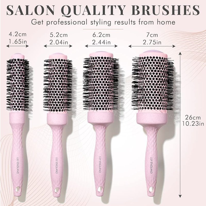 Introducing the Lily England Round Hair Brush Set, the hair care gift set for every woman who loves to style her hair effortlessly. This professional hair brush set includes 3 varying size round brushes and a comb, providing you with all the tools you need for a flawless blow dry. Whether you have short, medium, or long hair, this 4 piece kit has got you covered! Our round barrel brushes are designed for blow drying, allowing you to achieve salon-quality results from the comfort of your own home. The barrel brush for blow drying is perfect for creating volume and body, while the big barrel brush is ideal for smoothing and straightening. With the barrel hairbrush, you can style your hair, leaving it looking sleek and full of life. Not sure what to gift the women who has everything? Look no further! Our hairbrushes for women makes for a thoughtful gift. Whether it's for a birthday, anniversary, or just to show someone you care, this set is sure to impress. It's also the perfect addition to any beauty gifts sets for women, making it an ideal womens gift set and teen girl gift. With Christmas just around the corner, our Round Hair Brush Set is one of the best gifts you can give to the women in their 30s. It's a practical yet luxurious gift that will make their hair styling routine a breeze. Treat your loved ones to this exquisite women gift set and watch their faces light up with joy. Don't miss out on the opportunity to make this Christmas truly special! In conclusion, the Lily England Round Hair Brush Set is the ultimate hair care gift set that every woman needs in her life. With its professional quality brushes and comb, it's the perfect tool for achieving salon-worthy hair at home. Whether you're looking for a unique gift for women who have everything or searching for the best gifts for women in their 30s, this set is a must-have. Don't wait any longer, get your hands on this amazing hair brushes and experience the transformation in your styling routine today!