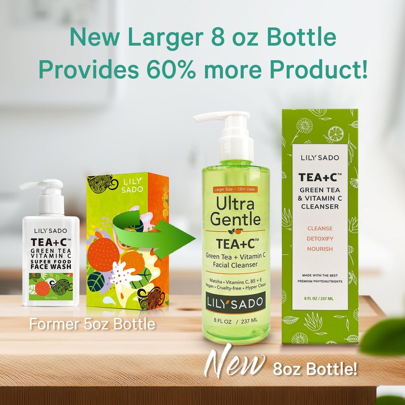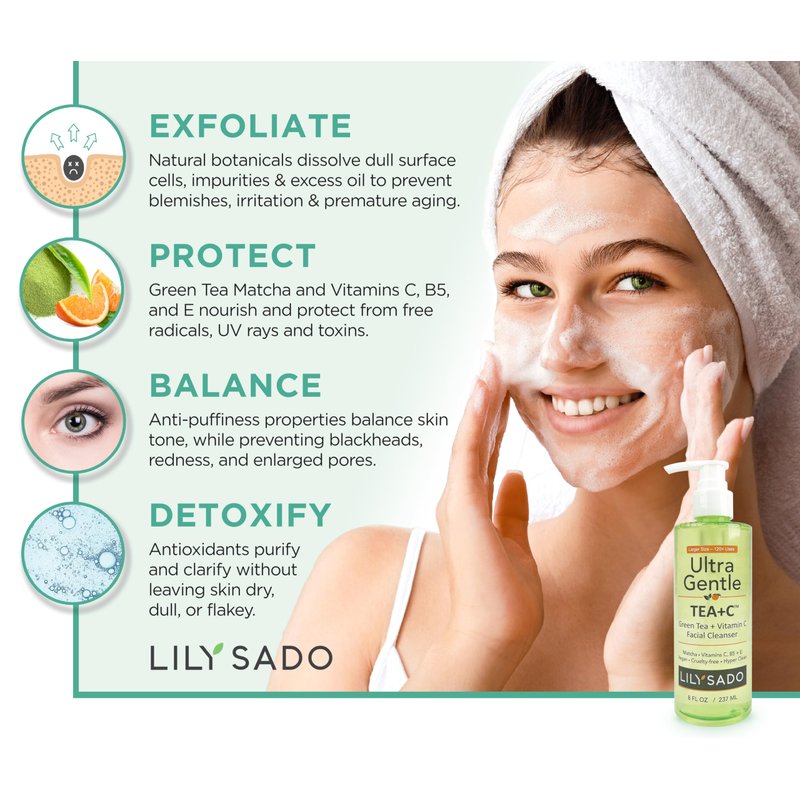 LILY SADO Tea+C Green Tea & Vitamin C Cleanser Face Wash: Your Best Defense Against Daily Grime, Oil, Blackheads, Blemishes, and Acne