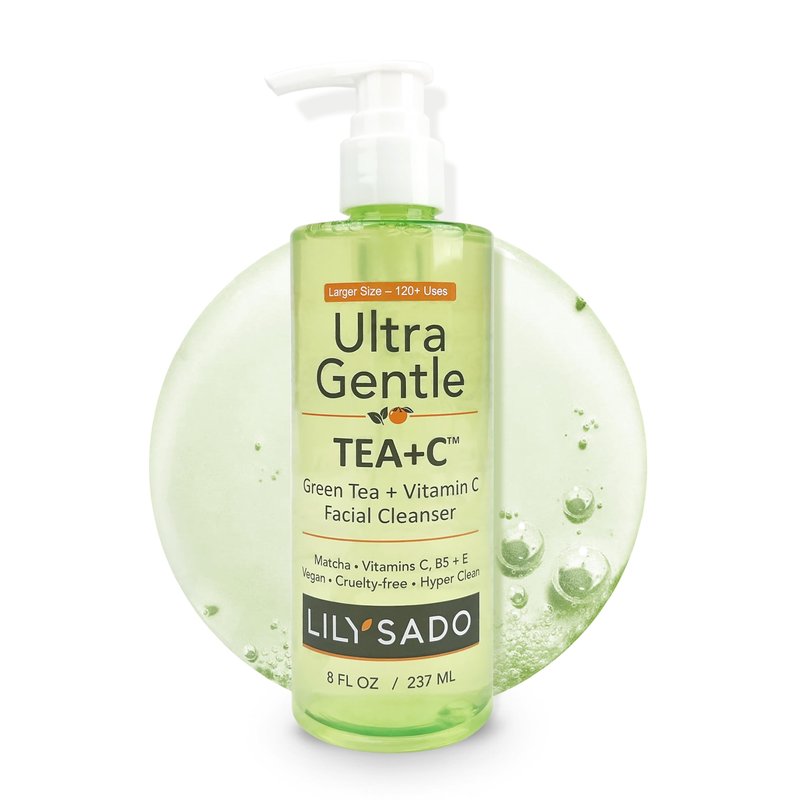 LILY SADO Tea+C Green Tea & Vitamin C Face Cleanser β Natural Vegan Antioxidant Daily Face Wash with Aloe, Rosehip, Meadowfoam - Gentle Deep Cleansing for Acne, Blackheads, Blemishes. 8 oz