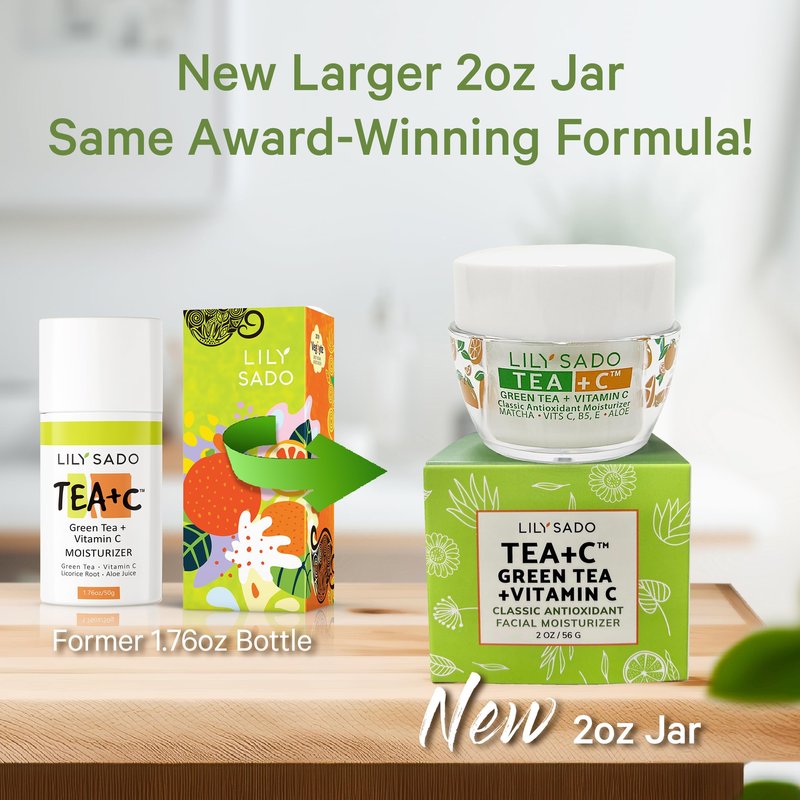 LILY SADO Tea+C Green Tea & Vitamin C Moisturizer - Antioxidant, Anti-Aging Anti-Wrinkle Daily Moisturizing Lotion - Hydrates, Softens, Firms & Tones for Healthy Radiant Skin. For Women & Men