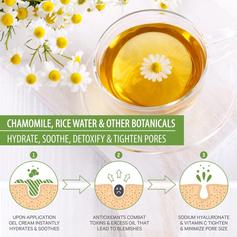 - 💐 Chamomile, Rosemary, Mango & Aloe - provide luscious all-day moisture, while combating blemishes. Anti-puffiness properties unclog & tighten pores, controlling oil production to prevent blemishes & blackheads. Anti-Aging Retinoids reduce hyperpigmentation & wrinkles for a softer more balanced complexion. Hydration properties work at a deep cellular level, helping your skin retain moisture & reducing water loss to plump, soften & tone skin.