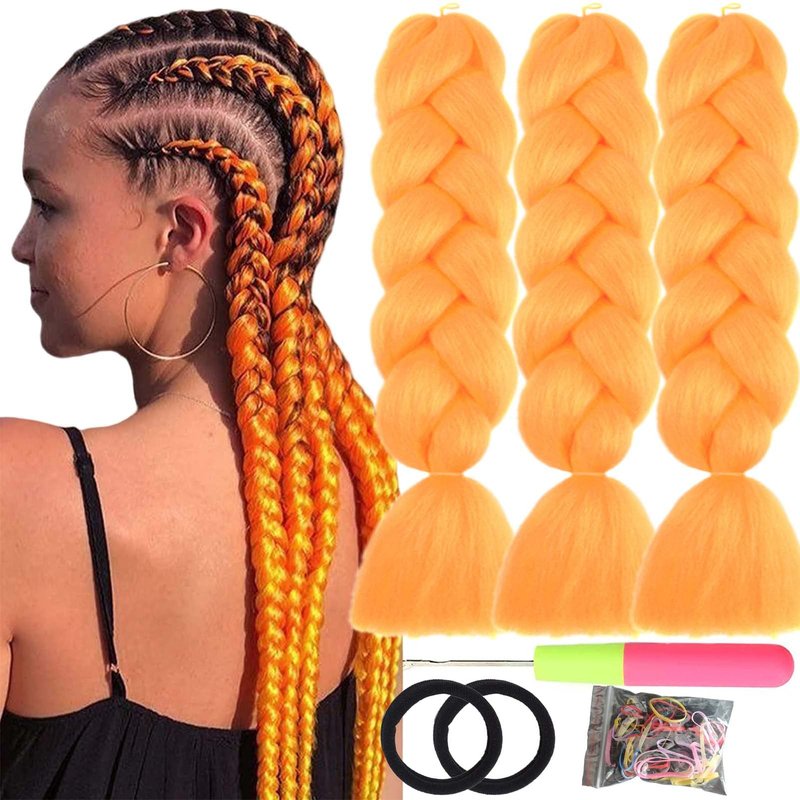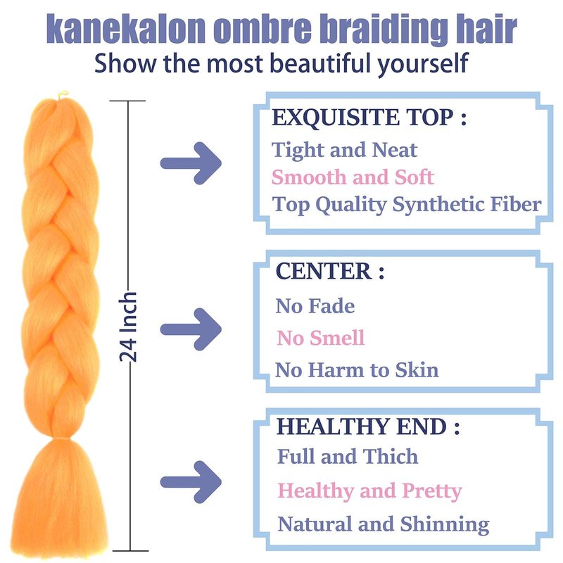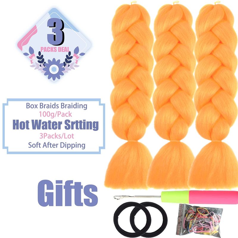 LILYKA SHOW 3 Packs 24 Inch Braiding Hair Extensions for Women Kanekalon Braiding Hair Ombre Jumbo Braiding Hair Extensions High Temperature Synthetic Braiding Hair for Twist Crochet Braids(3 Packs 24",orange)