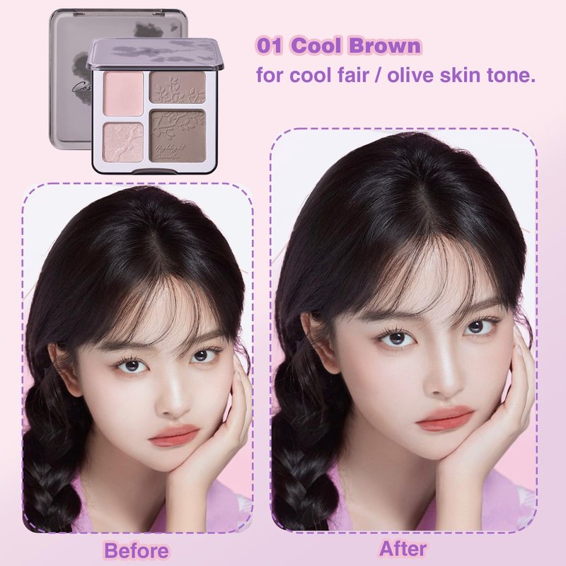 - 【4-Color Highlight & Contour Palette】This makeup palette features a matte and a shimmer highlighters, as well as 2 matte contour shades. With its fine powder texture, it enables a seamless and refined transition in your makeup, making it ideal for highlighting, contouring, sculpting, and various other purposes.